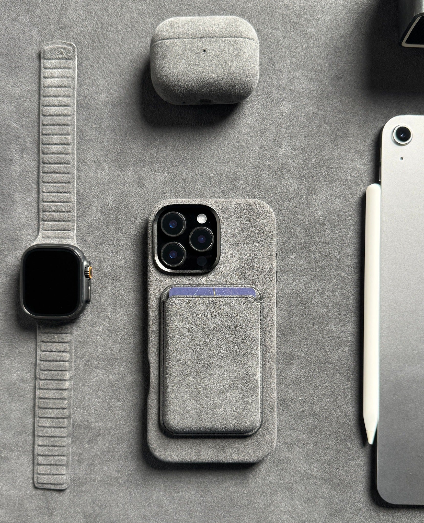 Alcantara is een luxe, suède-achtig materiaal uit Italië. Het voelt zacht en exclusief aan, is duurzaam, vegan en makkelijk te onderhouden. Daarom zie je het terug in premium auto’s én in onze stijlvolle accessoires
